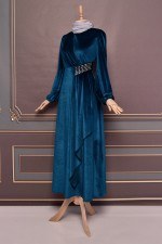 Kuşaklı Saten Abiye Mürdüm ASM14823