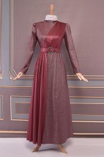 Kuşaklı Tül Abiye Bordo ASM2479