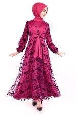 Kolyeli Tül Elbise Mürdüm ASM2453
