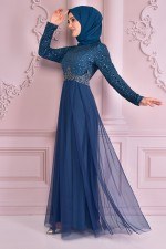 Tül Abiye İndigo ASM2205