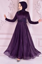 Kuşaklı Tül Abiye Mürdüm ASM2479