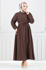 Beli Lastikli Elbise 012MR1077-M Kahve
