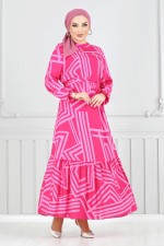 Desenli Viskon Elbise 811OZR1047-M Fuşya