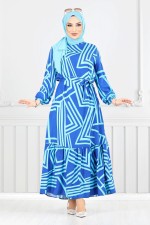 Beli Tünelli Tesettür Elbise 225ASN936-M Bebe Mavisi