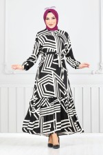 Desenli Viskon Elbise 811OZR1047-M Vizyon&Siyah