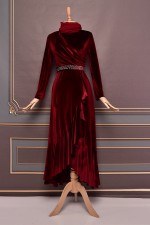 Kuşaklı Kadife Abiye Bordo ASM2531