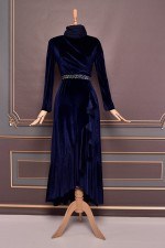 Kuşaklı Kadife Elbise Lacivert EFY2912