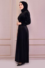 Kemerli Kadife Abiye Siyah NEV15007