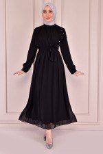 İnci Detaylı Şifon Elbise Siyah EFS2068