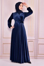 Kemerli Kadife Abiye Lacivert NEV14967
