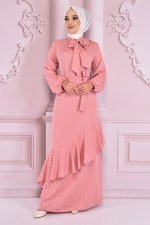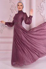 Simli Şifon Abiye Koyu Gül Kurusu ASM2472