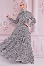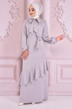 Bağcık Detay Elbise Gri NEV14721