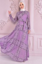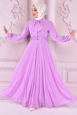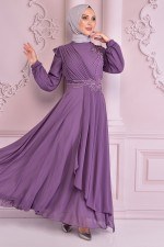 İnci Detay Şifon Abiye Lila NEV14741