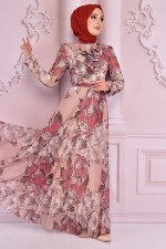 Çiçekli Şifon Elbise Krem NEV14852