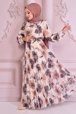 Çiçekli Şifon Elbise Somon NEV14659