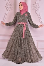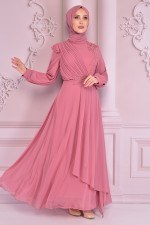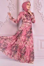Kuşaklı Şifon Elbise Gül Kurusu NEV14312