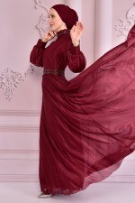 Simli Şifon Abiye Bordo ASM2472