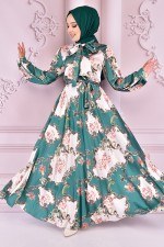 Kuşaklı Şifon Elbise Vizon NEV24725