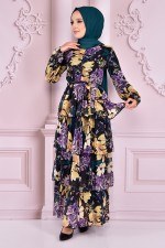 Fırfırlı Şifon Elbise Siyah NEV14433