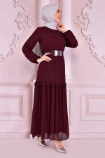 Kemerli Şifon Elbise Bordo END2091