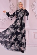 Kuşaklı Şifon Elbise Siyah NEV14312