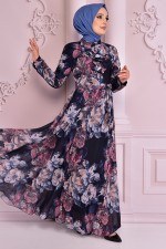 Piliseli Şifon Abiye İndigo NEV14917