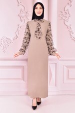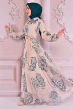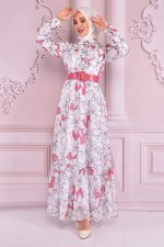 Kemerli Şifon Elbise Gül Kurusu NEV14945