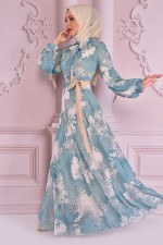 Bağcık Detay Şifon Elbise Yeşil NEV14313