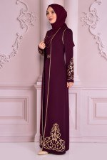 Gold Aplik Yelekli Elbise Mürdüm ASM2055