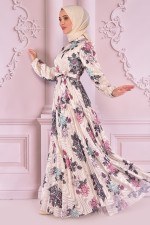 Kuşaklı Saten Elbise Vizon NEV14897