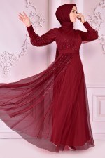 Kuşaklı Şifon Elbise Mürdüm NEV14927