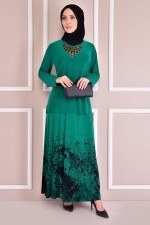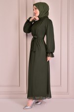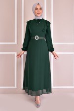 Kemerli Şifon Elbise Zümrüt EFS12441