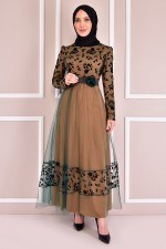 Kuşaklı Tül Elbise Taba ASM2501
