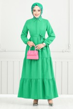 Yarım Düğmeli Terikoton Elbise 400ART1044-M Benetton Yeşili