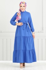 Etnik Desen Tesettür Elbise 802OZR1047-M Saks