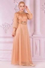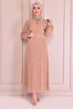 Kemerli Şifon Elbise Bej EFS12441
