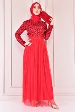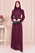 Güpür Detay Simli Abiye Bordo KBR10023