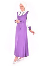 Nakış Detay Elbise Lila ASN2054