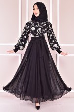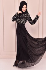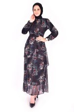 Şifon Elbise Siyah 04 NEV14674