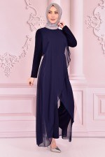 Kemerli Saten Abiye Lacivert NEV14862