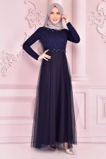Güpür Detay Elbise Lacivert ASM2387