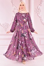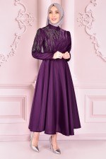 Güpür Detay Simli Abiye Koyu Gül Kurusu ASM10022