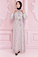 Bağcık Detay Şifon Elbise Beyaz VBR7350