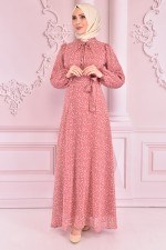 Bağcık Detay Şifon Elbise Pudra VBR7350