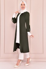 Bağcık Detaylı İkili Ceket Kombin Haki KBR1970