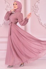 İnci Detay Simli Abiye Gül Kurusu KBR5063