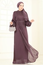 Taş Detaylı Organze Abiye 6231BSK463-MS Koyu Gül Kurusu