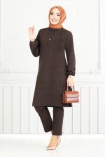 Aksesuar Düğmeli Tesettür Takım 22035UKB929-M Kahve