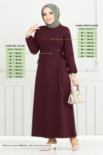Belden Bağlamalı Tesettür Elbise 22037UKB929-M Bordo