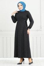 Belden Bağlamalı Tesettür Elbise 22037UKB929-M Siyah